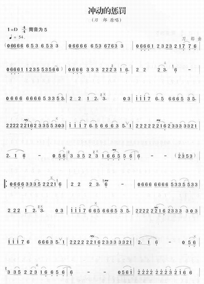 冲动的惩罚-刀郎(笛子曲谱 笛子曲 笛子谱 笛子独奏 竹笛曲谱 笛子音乐 竹笛曲 竹笛音乐 中国竹笛)