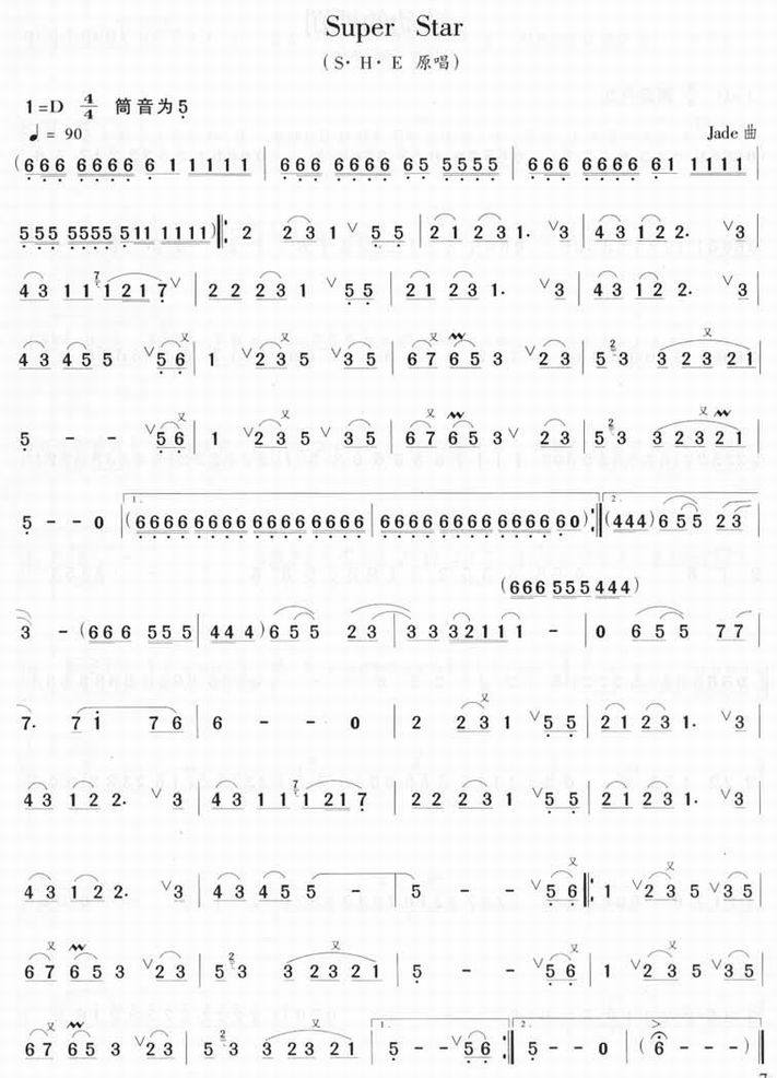 Super Star-s.h.e(笛子曲谱 笛子曲 笛子谱 笛子独奏 竹笛曲谱 笛子音乐 竹笛曲 竹笛音乐 中国竹笛)