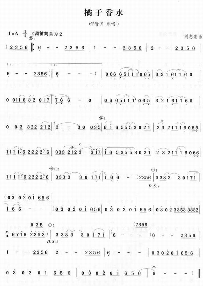 橘子香水-任贤齐(笛子曲谱 笛子曲 笛子谱 笛子独奏 竹笛曲谱 笛子音乐 竹笛曲 竹笛音乐 中国竹笛)