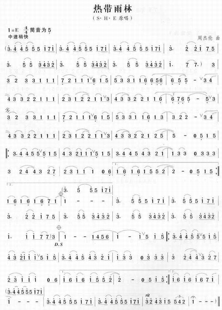 热带雨林-s.h.e(笛子曲谱 笛子曲 笛子谱 笛子独奏 竹笛曲谱 笛子音乐 竹笛曲 竹笛音乐 中国竹笛)
