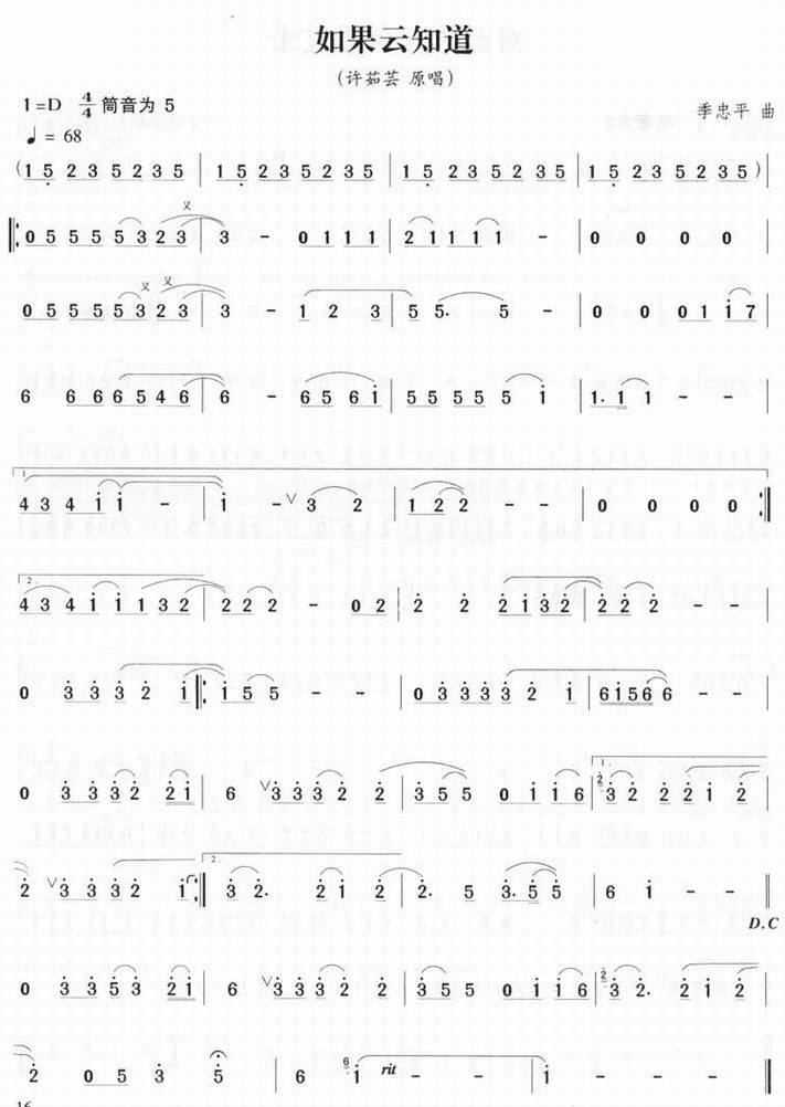 如果云知道-许茹芸(笛子曲谱 笛子曲 笛子谱 笛子独奏 竹笛曲谱 笛子音乐 竹笛曲 竹笛音乐 中国竹笛)