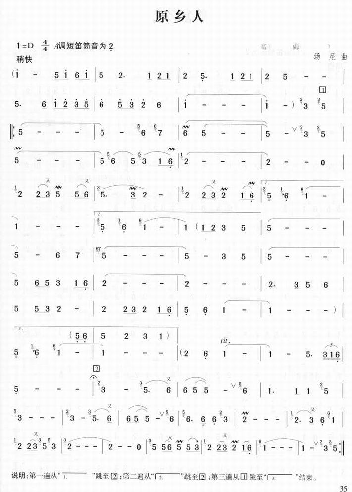 原乡人-邓丽君(笛子曲谱 笛子曲 笛子谱 笛子独奏 竹笛曲谱 笛子音乐 竹笛曲 竹笛音乐 中国竹笛)
