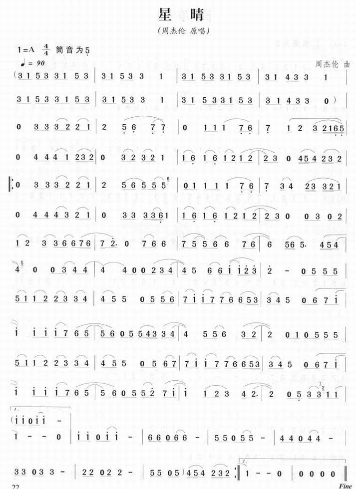 星晴-周杰伦(笛子曲谱 笛子曲 笛子谱 笛子独奏 竹笛曲谱 笛子音乐 竹笛曲 竹笛音乐 中国竹笛)