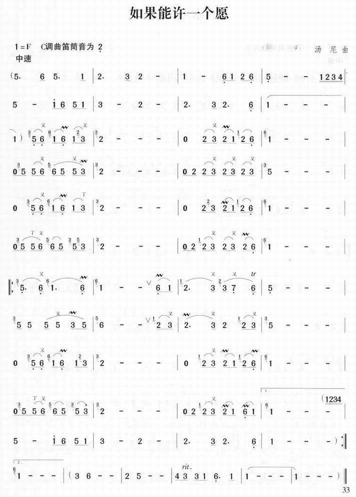 如果能许一个愿-邓丽君(笛子曲谱 笛子曲 笛子谱 笛子独奏 竹笛曲谱 笛子音乐 竹笛曲 竹笛音乐 中国竹笛)