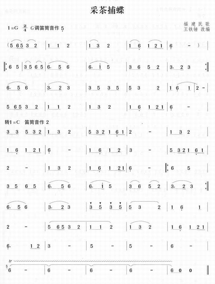 >> 采茶扑蝶-采茶灯(笛子曲谱)