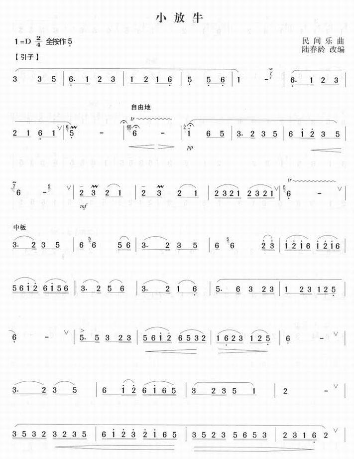 小放牛(笛子曲谱 笛子曲 笛子谱 笛子独奏 竹笛曲谱 笛子音乐 竹笛曲 竹笛音乐 中国竹笛)