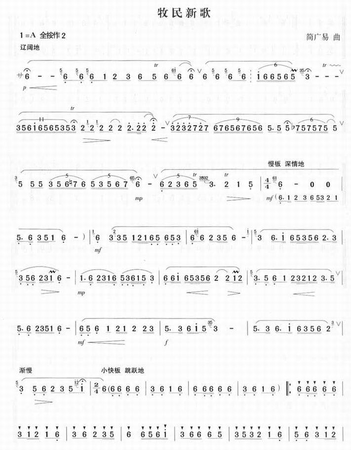 牧民新歌(笛子曲谱 笛子曲 笛子谱 笛子独奏 竹笛曲谱 笛子音乐 竹笛曲 竹笛音乐 中国竹笛)
