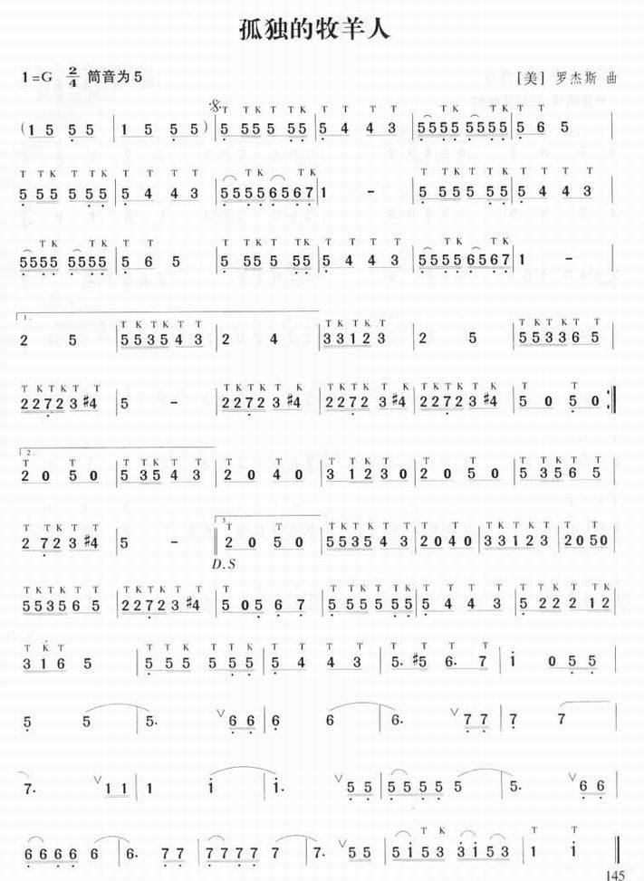 孤独的牧羊人-罗杰斯(笛子曲谱)