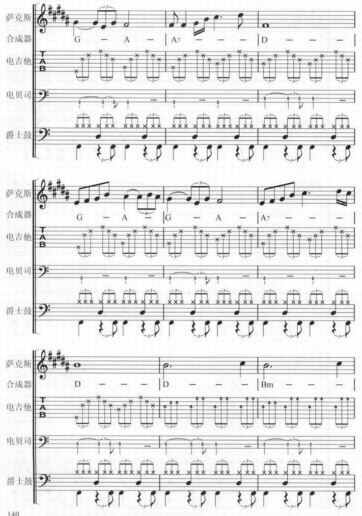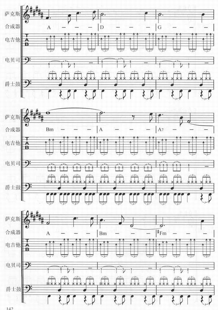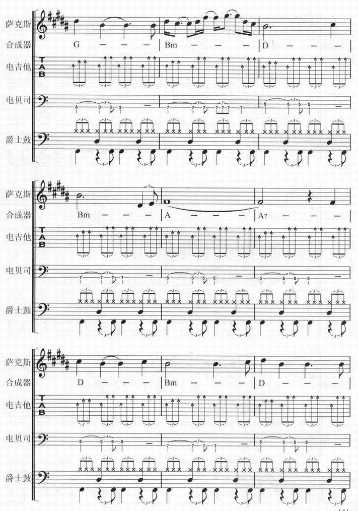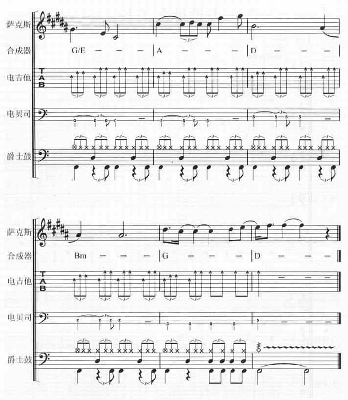 奔放的旋律-人鬼情未了主题曲(电声乐队谱 乐队总谱)电声乐队演奏谱 贝司谱 鼓谱 键盘谱 吉它solo谱