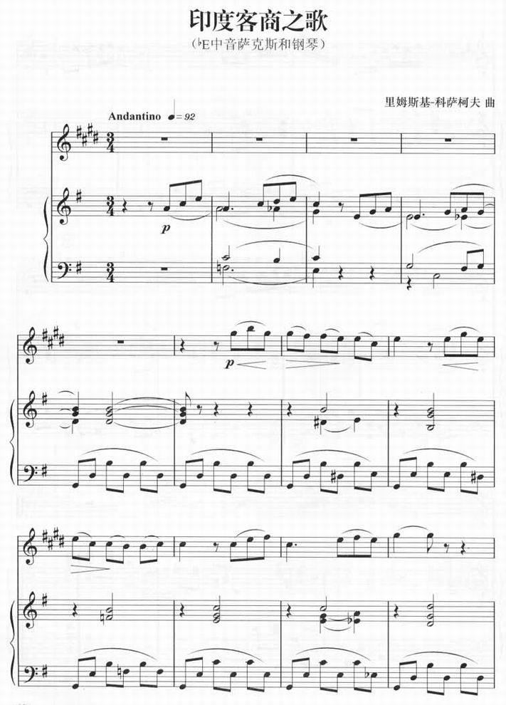 >> 印度客商之歌-世界名曲(bE中音萨克斯谱+钢琴伴奏谱)