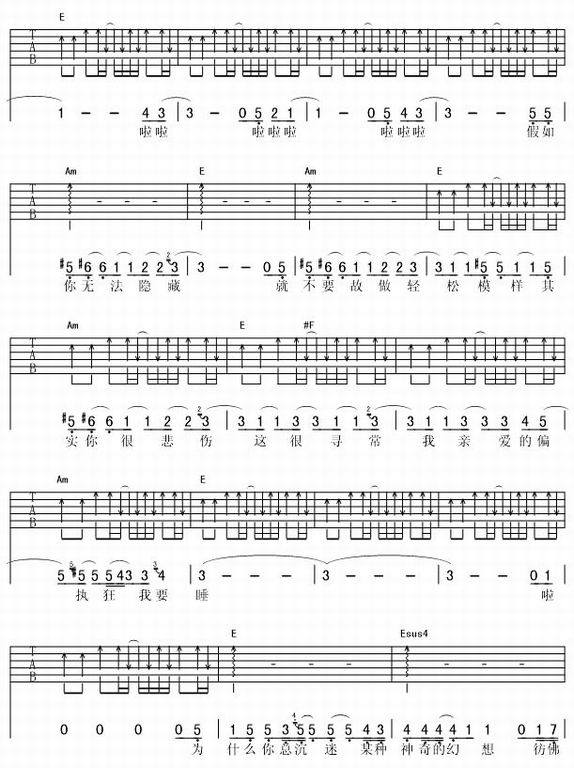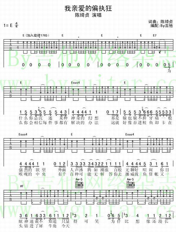 我亲爱的偏执狂-陈绮贞(吉他谱 吉他曲谱 吉他六线谱 吉他歌谱 吉它谱 影视吉他谱)