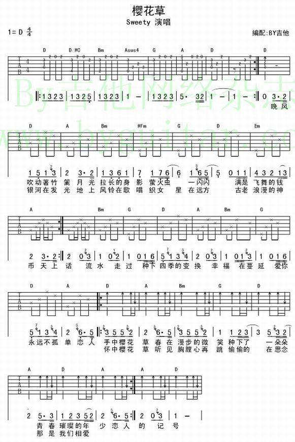 樱花草-sweety(吉他谱 吉他曲谱 吉他六线谱 吉他歌谱 吉它谱 影视吉他谱)