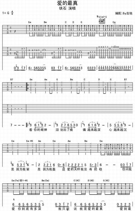 爱的最真-铁石(吉他谱 吉他曲谱 吉他六线谱 吉他歌谱 吉它谱 影视吉他谱)
