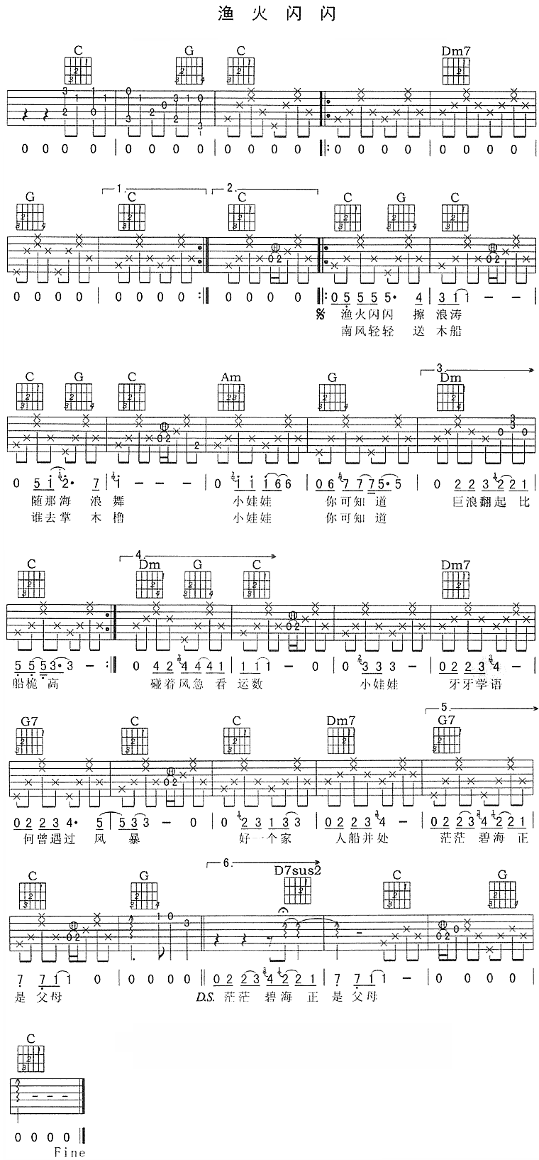 渔火闪闪-区瑞强(吉他谱 吉他曲谱 吉他六线谱 吉他歌谱 吉它谱 影视吉他谱)