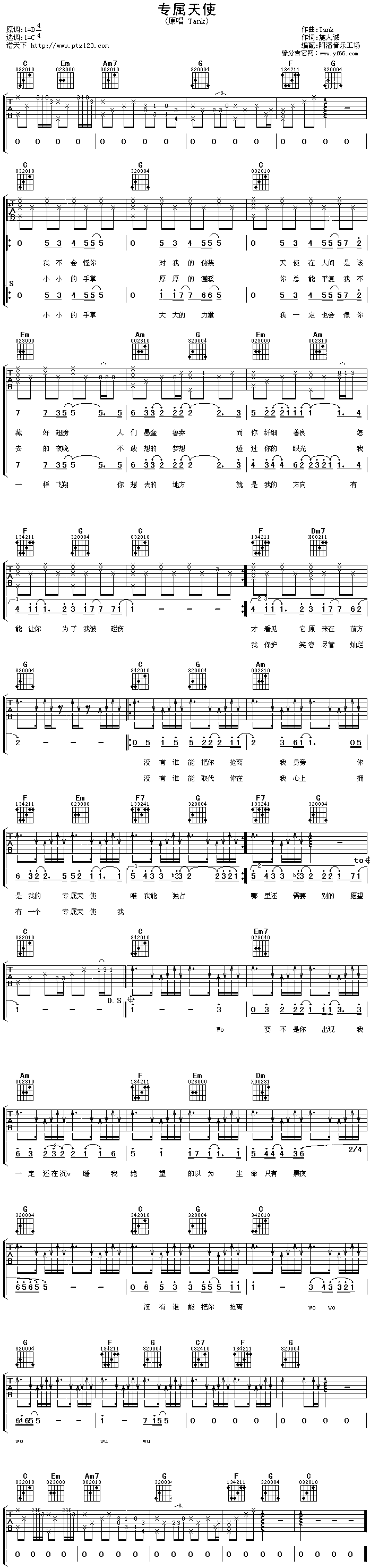 专属天使-tank(吉他谱 吉他曲谱 吉他六线谱 吉他歌谱 吉它谱 影视吉他谱)