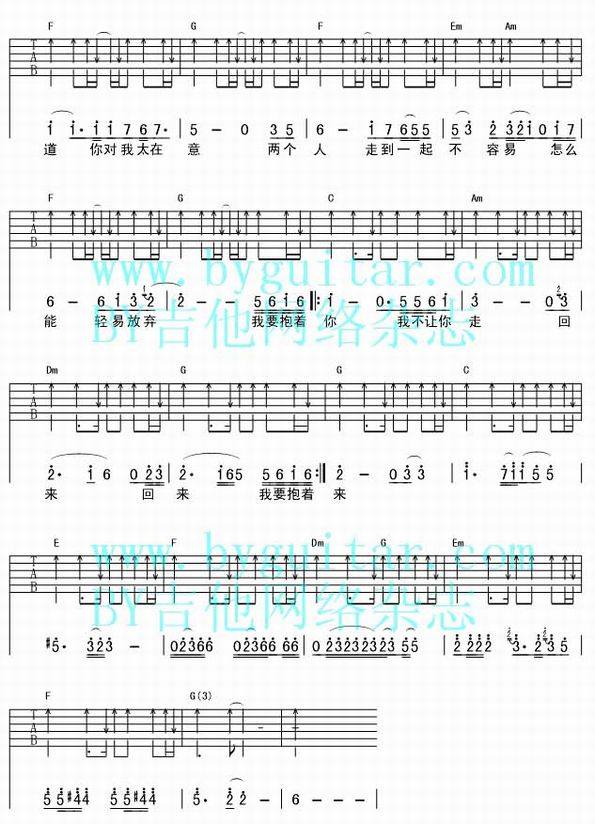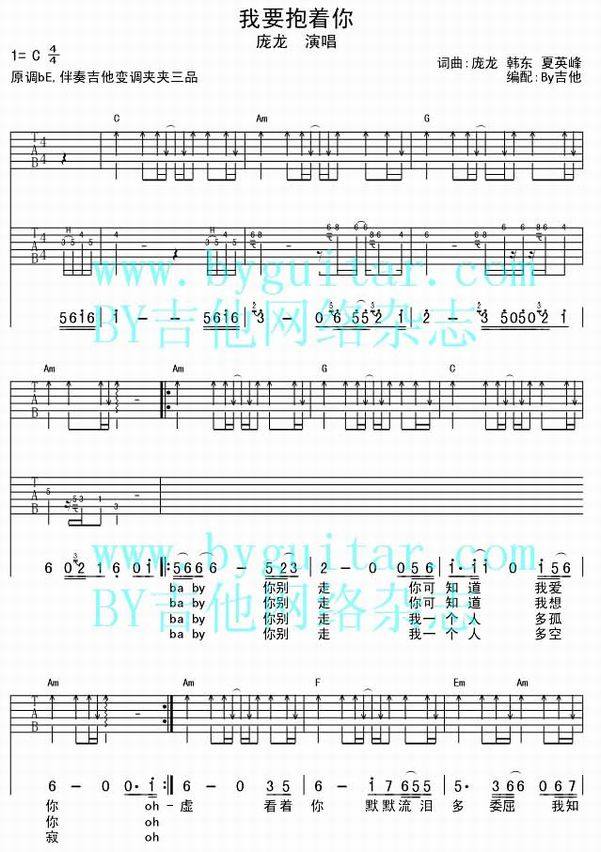 我要抱着你-庞龙(吉他谱 吉他曲谱 吉他六线谱 吉他歌谱 吉它谱 影视吉他谱)