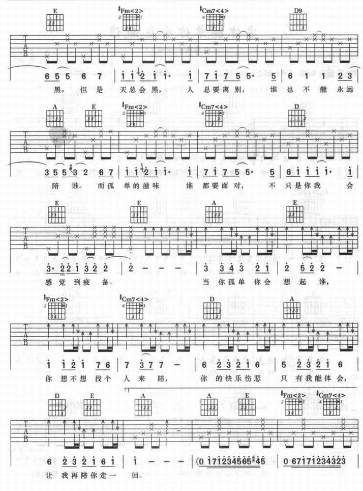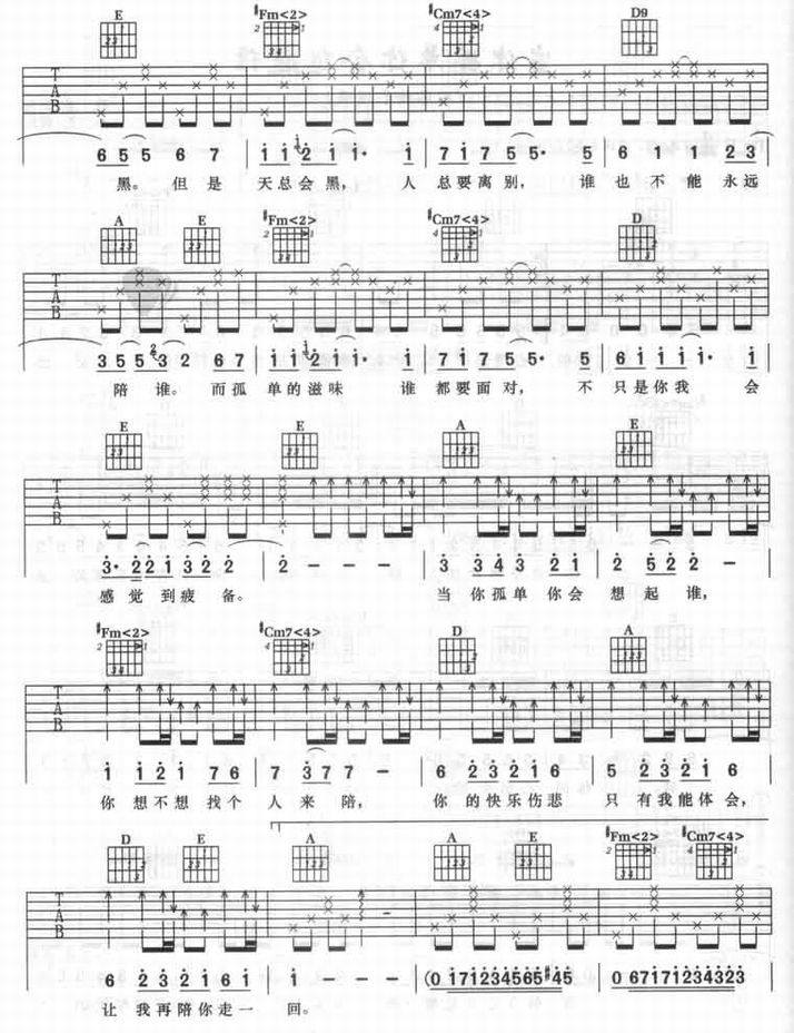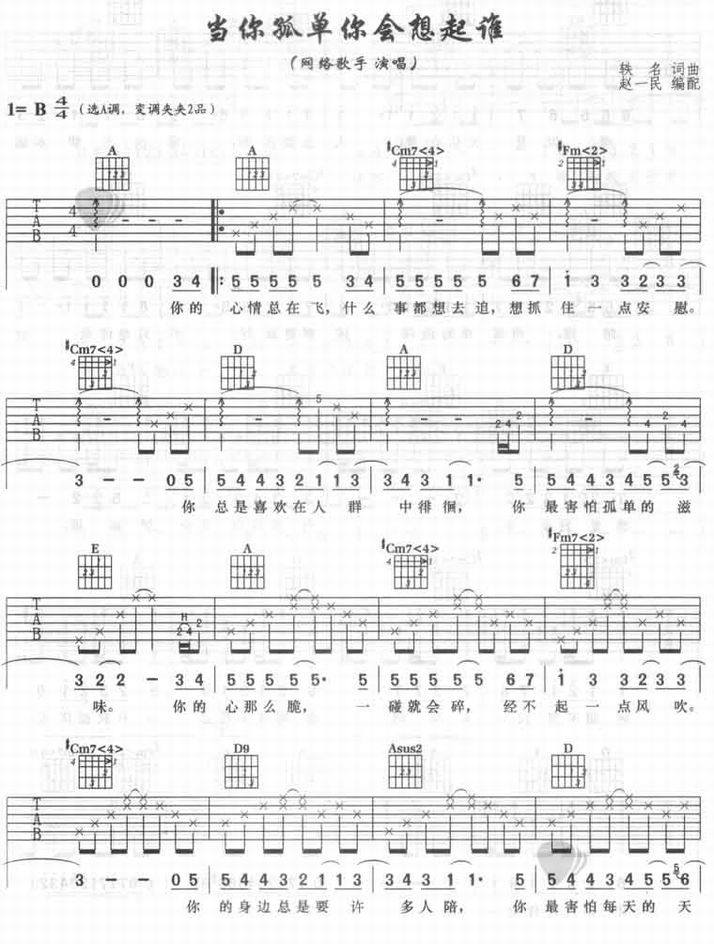 当你孤单你会想起谁-张栋梁(吉他谱 吉他曲谱 吉他六线谱 吉他歌谱 吉它谱 影视吉他谱)
