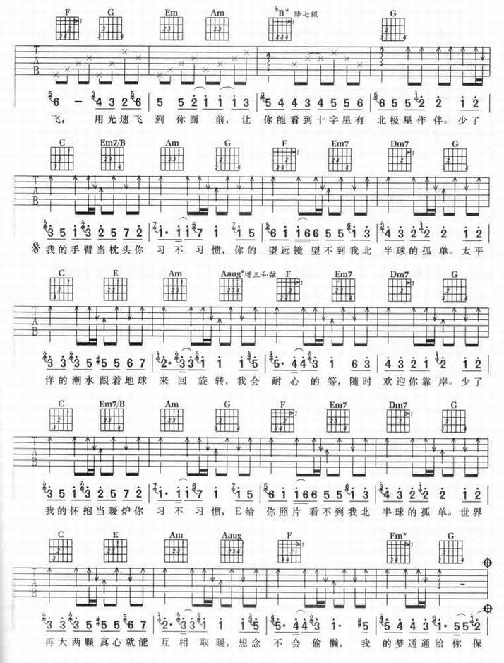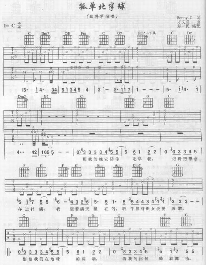 孤单北半球-欧得洋(吉他谱 吉他曲谱 吉他六线谱 吉他歌谱 吉它谱 影视吉他谱)