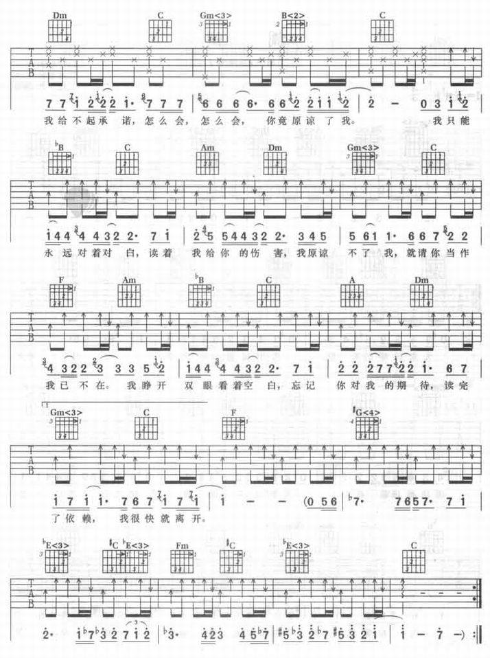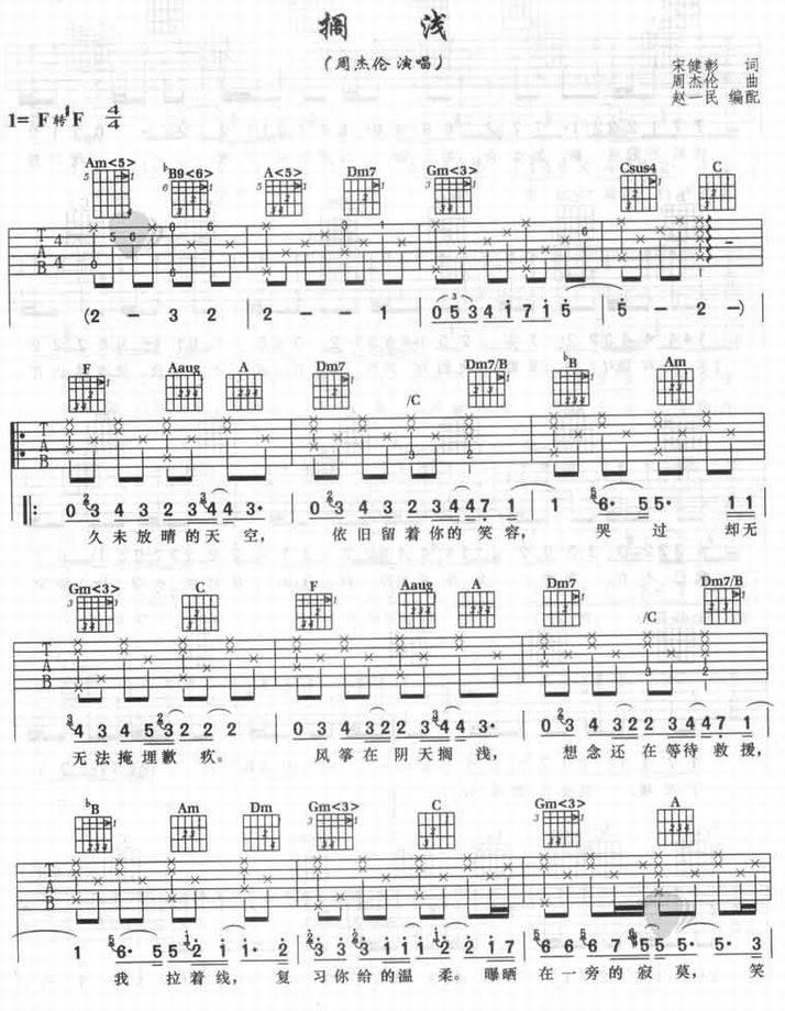 搁浅-周杰伦(吉他谱 吉他曲谱 吉他六线谱 吉他歌谱 吉它谱 影视吉他谱)