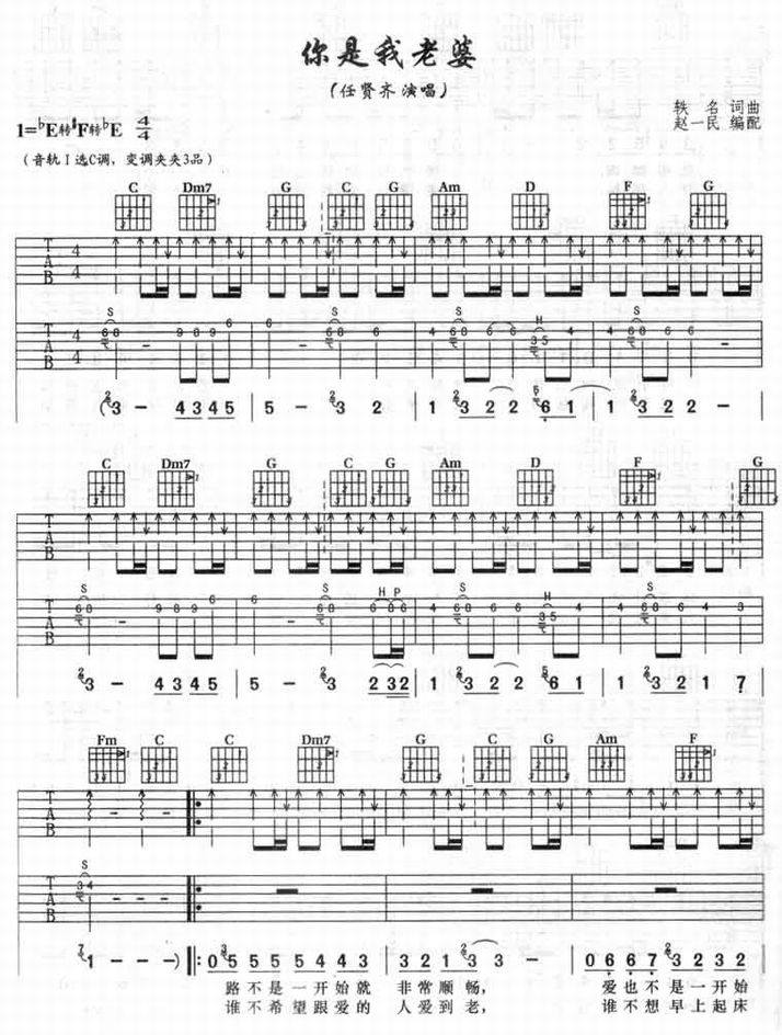 你是我老婆-任贤齐(吉他谱 吉他曲谱 吉他六线谱 吉他歌谱 吉它谱 影视吉他谱)