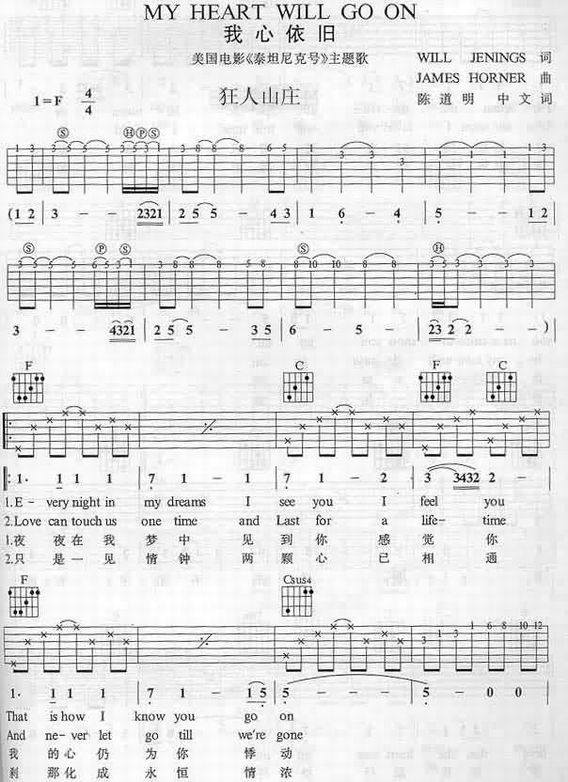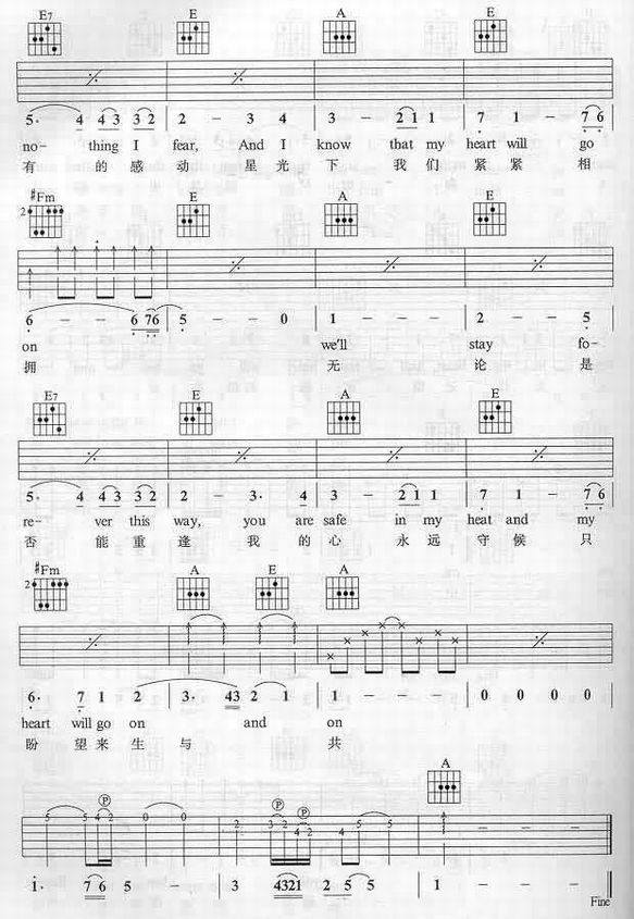 My Heart Will Go On-Celine Dion(吉他谱 吉他曲谱 吉他六线谱 吉他歌谱 吉它谱 影视吉他谱)