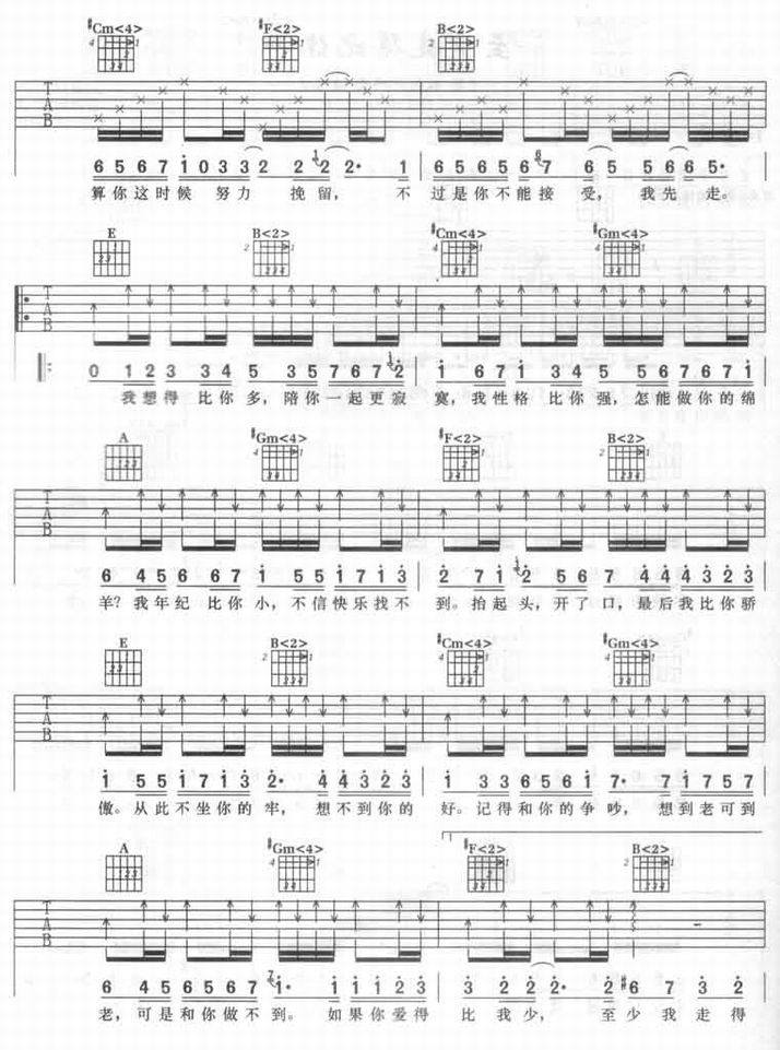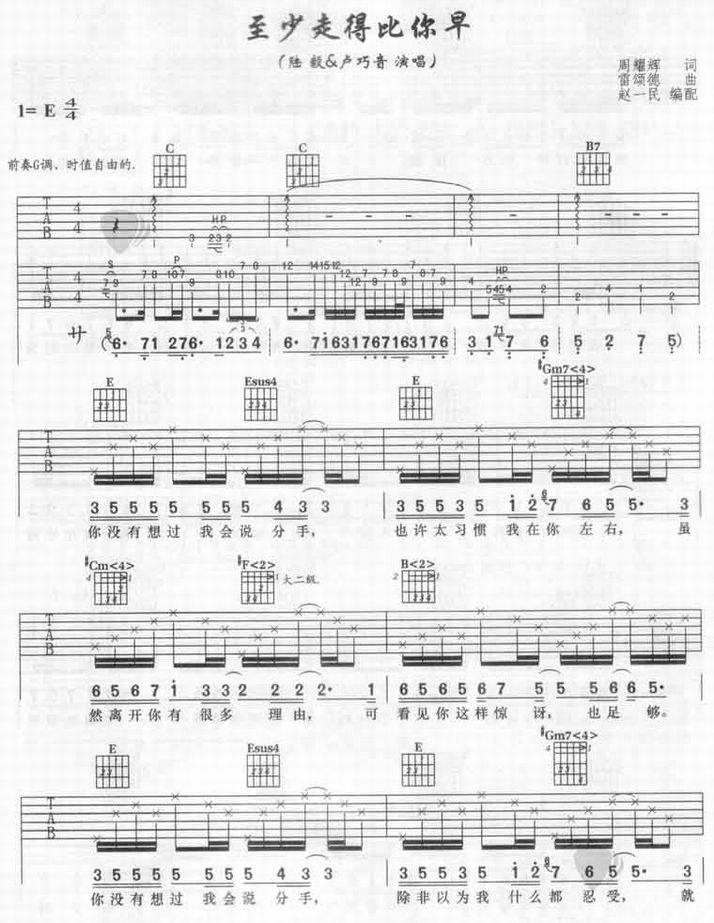 至少走得比你早-陆毅 卢巧音(吉他谱 吉他曲谱 吉他六线谱 吉他歌谱 吉它谱 影视吉他谱)
