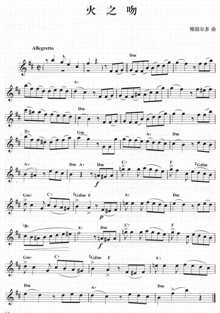 火之吻-带和弦(萨克斯曲谱 简谱 线谱)萨克斯曲 萨克斯谱 萨克斯音乐
