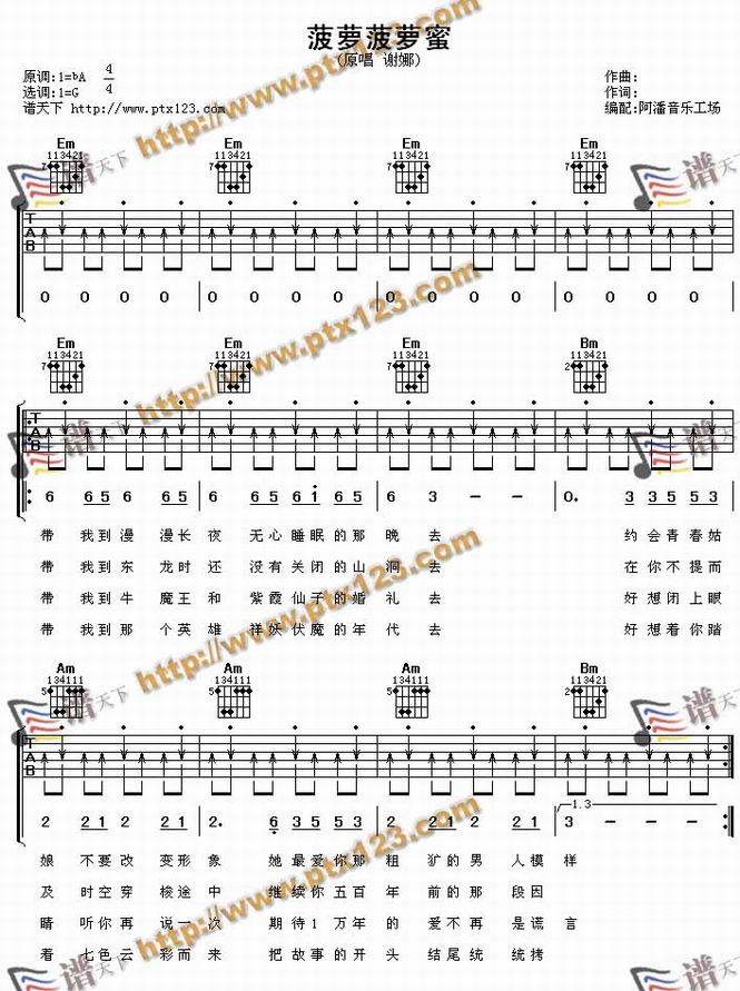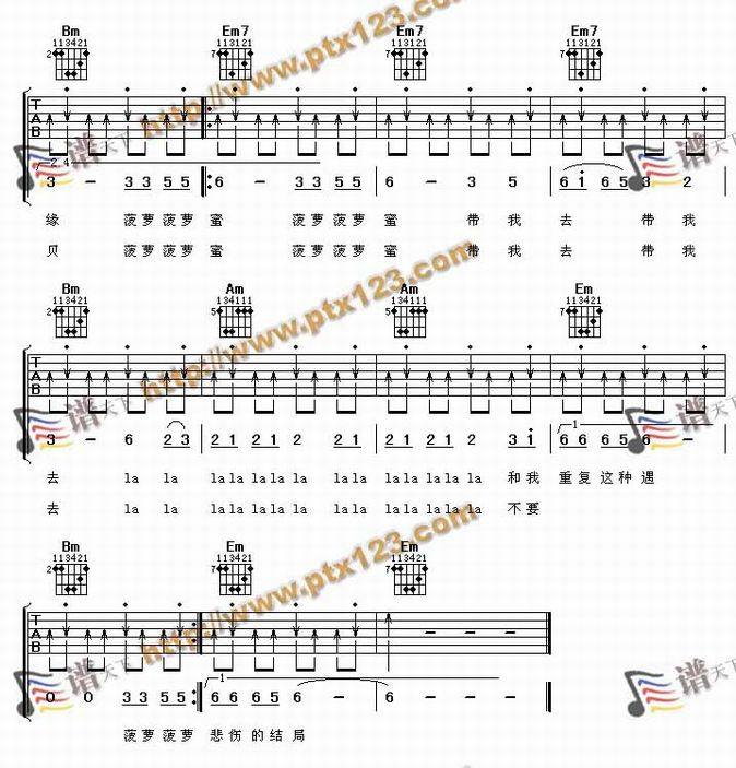 菠萝菠萝蜜-谢娜(吉他谱 吉他曲谱 吉他六线谱 吉他歌谱 吉它谱 影视吉他谱)