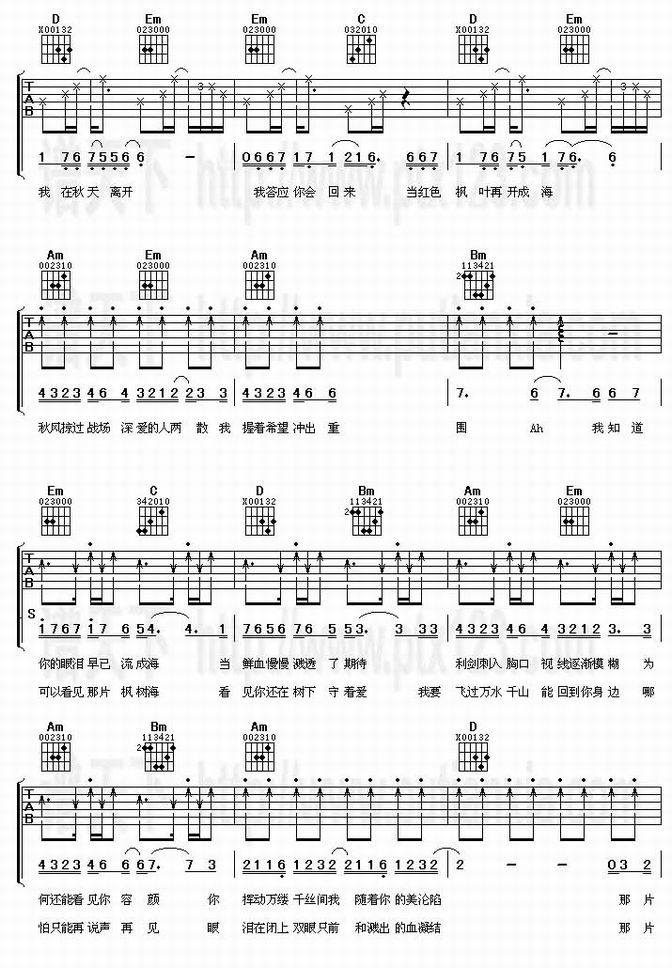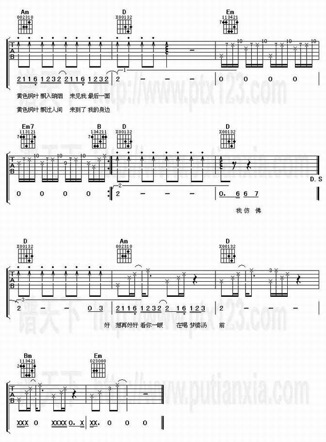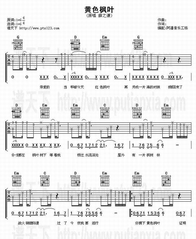 黄色枫叶-薛之谦(吉他谱 吉他曲谱 吉他六线谱 吉他歌谱 吉它谱 影视吉他谱)