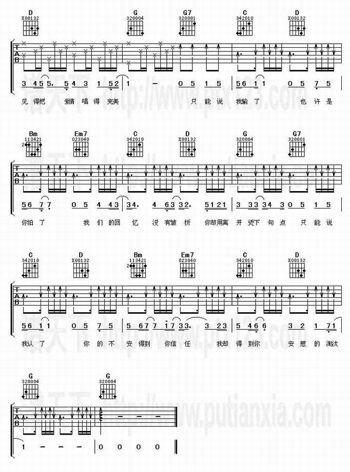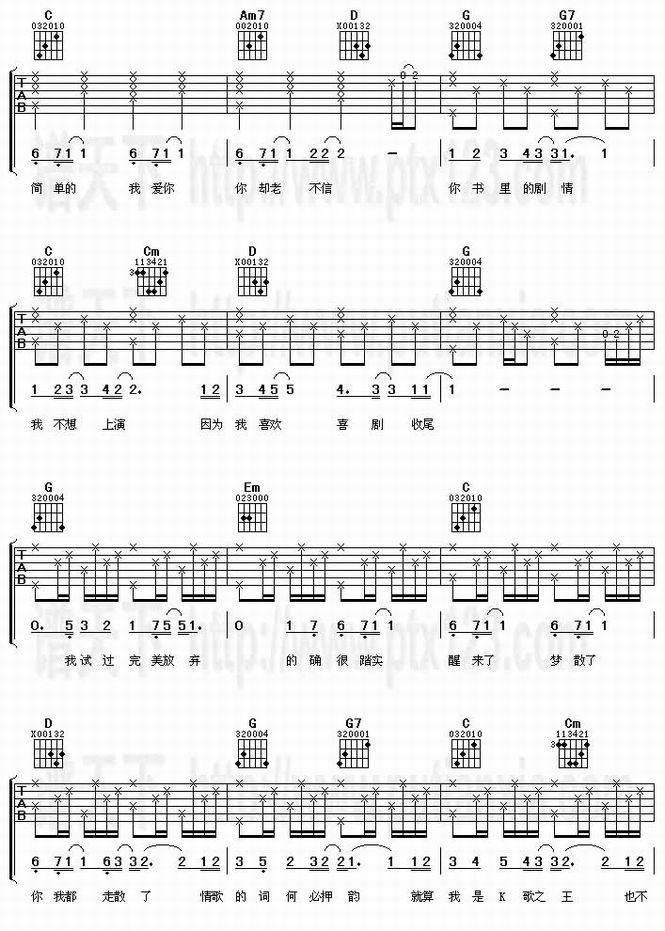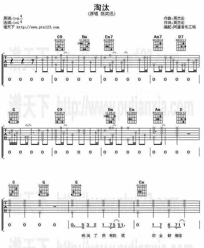 淘汰-陈奕迅(吉他谱 吉他曲谱 吉他六线谱 吉他歌谱 吉它谱 影视吉他谱)