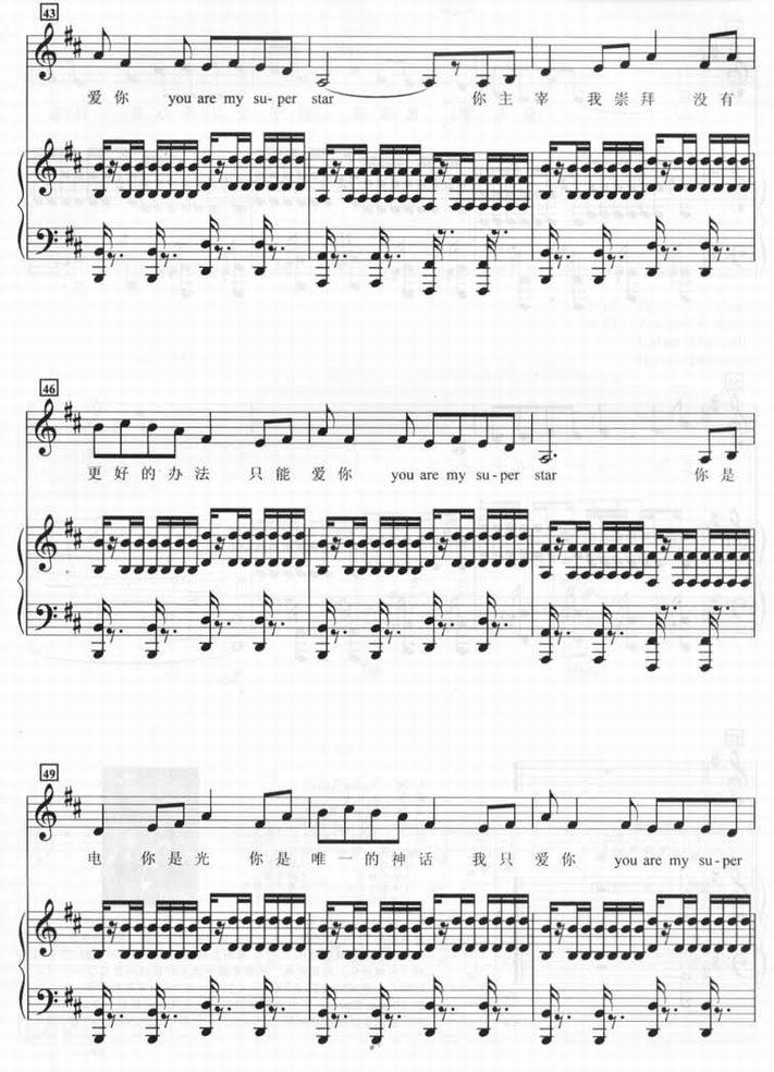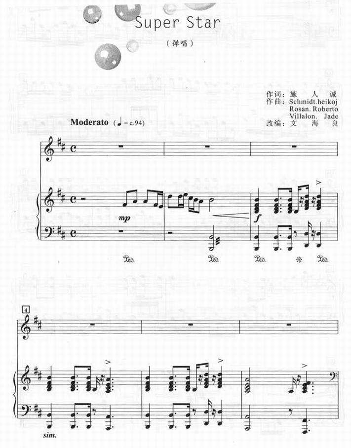 Super Star-s.h.e(钢琴谱 钢琴五线谱 流行钢琴谱 钢琴伴奏谱 钢琴弹唱谱 钢琴谱下载)