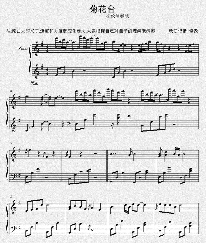 菊花台-周杰伦(钢琴谱 钢琴五线谱 流行钢琴谱 钢琴伴奏谱 钢琴弹唱谱 钢琴谱下载)