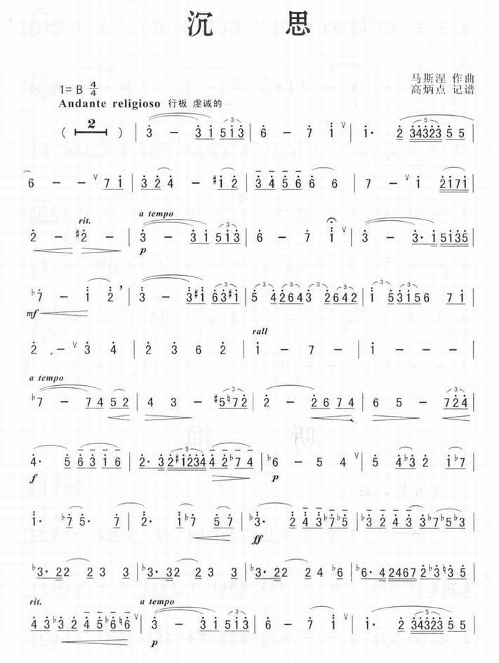 沉思(萨克斯简谱 萨克斯曲谱 线谱)萨克斯曲 萨克斯谱 萨克斯音乐 萨克斯名曲)