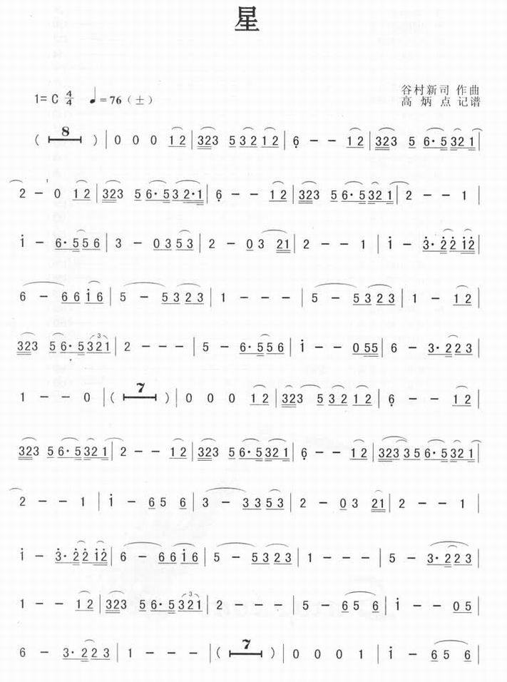 星(萨克斯简谱 萨克斯曲谱 线谱)萨克斯曲 萨克斯谱 萨克斯音乐 萨克斯名曲)