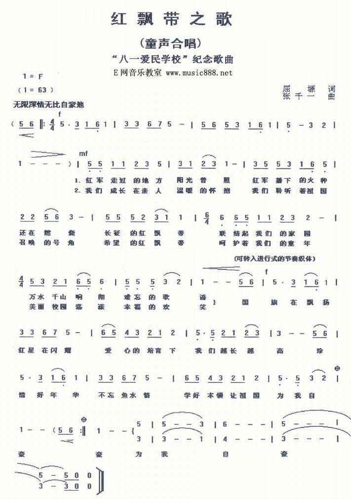 红飘带之歌-八一爱民学校纪念歌曲(简谱 歌谱 歌曲简谱 合唱简谱 影视简谱)