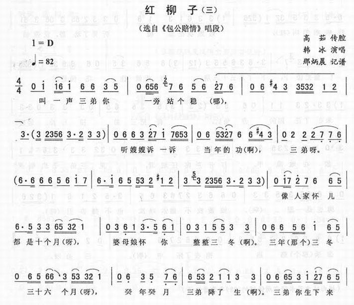 红柳子(三)_<包公赔情>二人转简谱 二人转乐谱 二人转曲谱 东北二人转