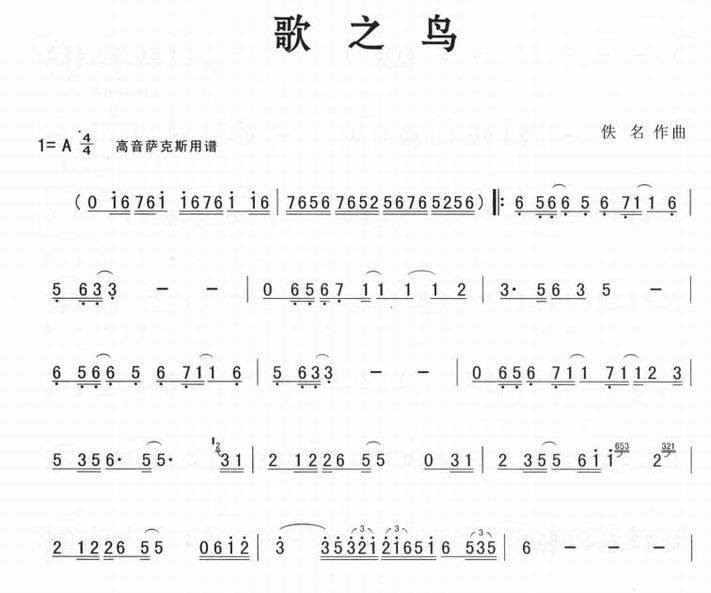 歌之鸟(萨克斯简谱 萨克斯曲谱 线谱)萨克斯曲 萨克斯谱 萨克斯音乐 萨克斯名曲)