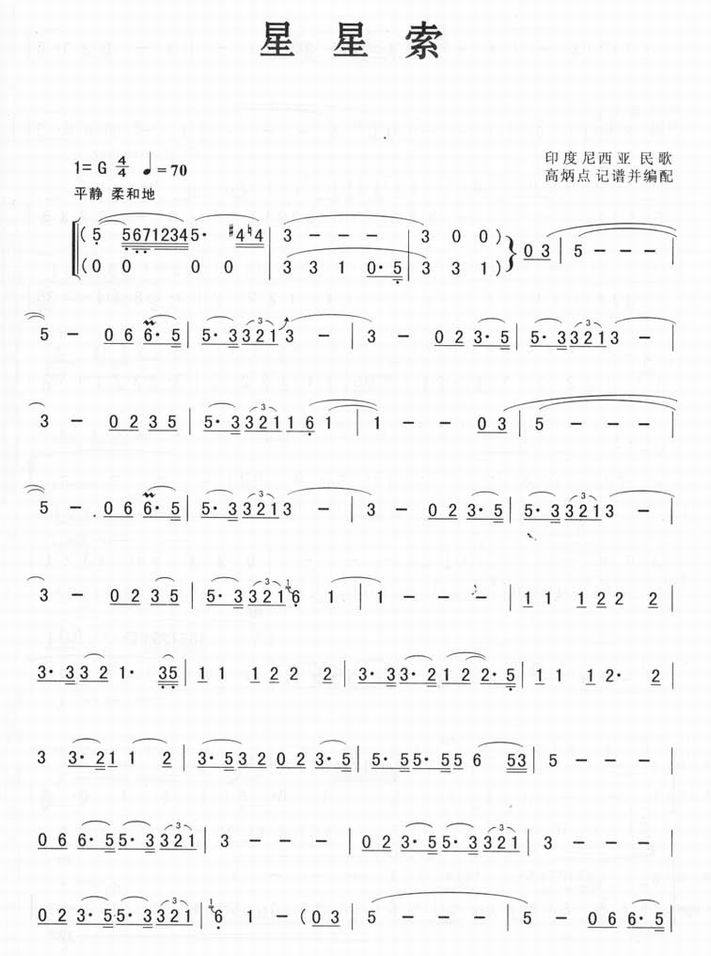 星星索_印度尼西亚民歌(萨克斯简谱 萨克斯曲谱 线谱)萨克斯曲 萨克斯谱 萨克斯音乐 萨克斯名曲)