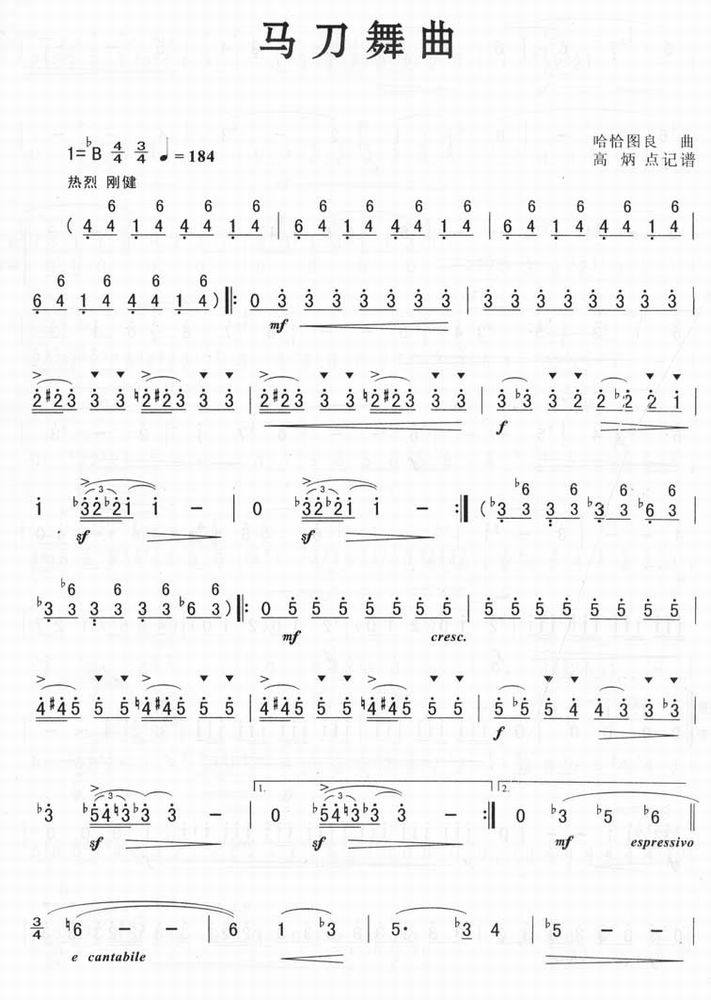 马刀舞曲-世界名曲(萨克斯简谱 萨克斯曲谱 线谱)萨克斯曲 萨克斯谱 萨克斯音乐 萨克斯名曲)