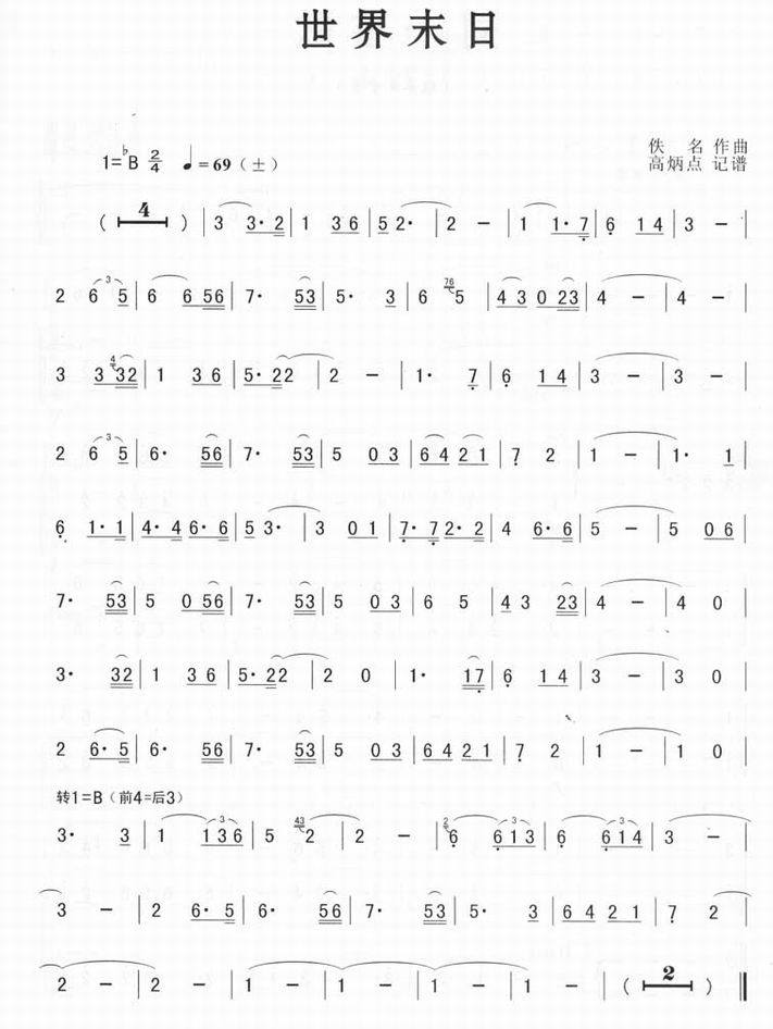 世界末日(萨克斯简谱)