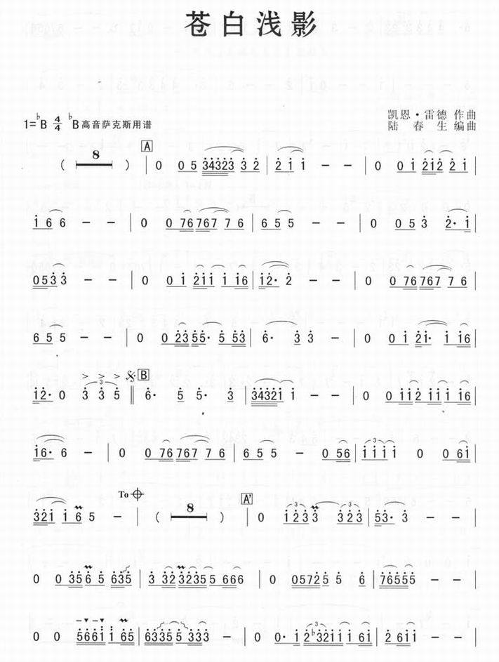苍白浅影-A Whiter Shade of Pale(萨克斯简谱 萨克斯曲谱 线谱)萨克斯曲 萨克斯谱 萨克斯音乐 萨克斯名曲)