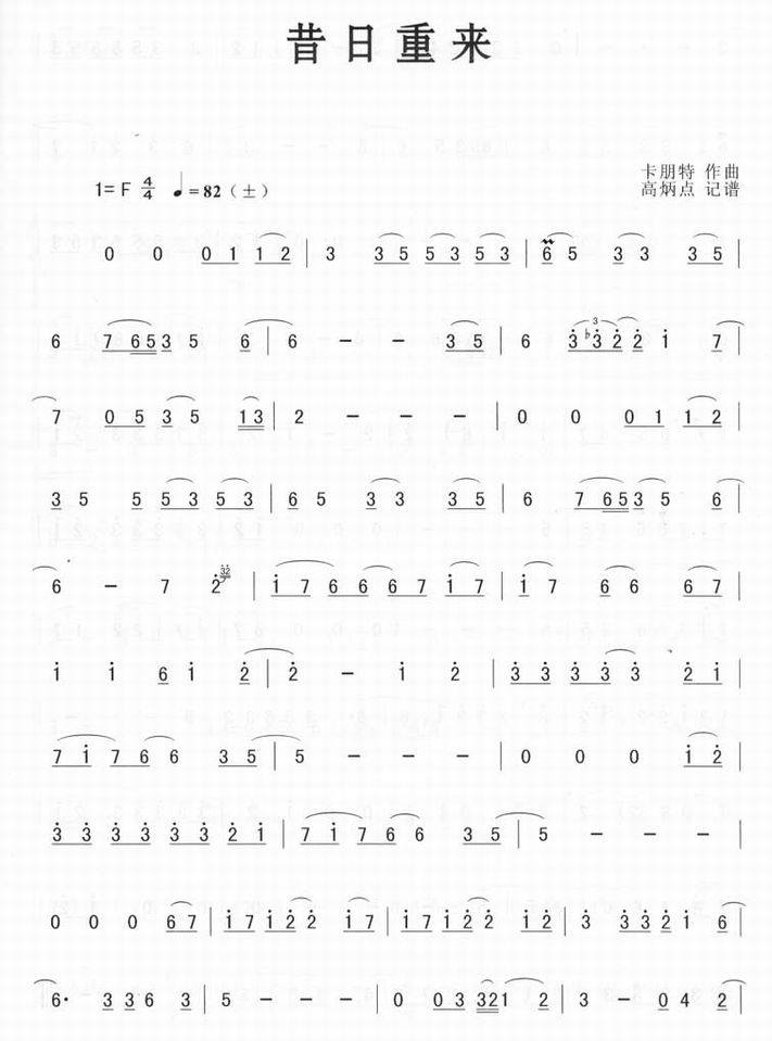 昔日重来-卡朋特(萨克斯简谱 萨克斯曲谱 线谱)萨克斯曲 萨克斯谱 萨克斯音乐 萨克斯名曲)