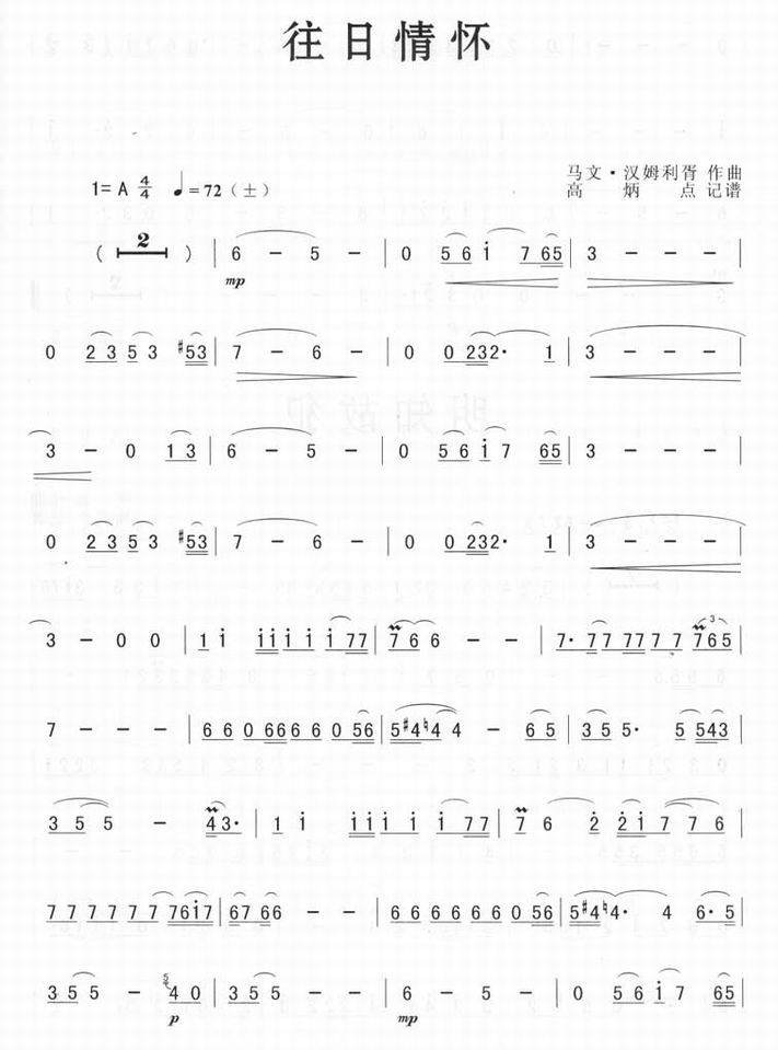 往日情怀(萨克斯简谱 萨克斯曲谱 线谱)萨克斯曲 萨克斯谱 萨克斯音乐 萨克斯名曲)
