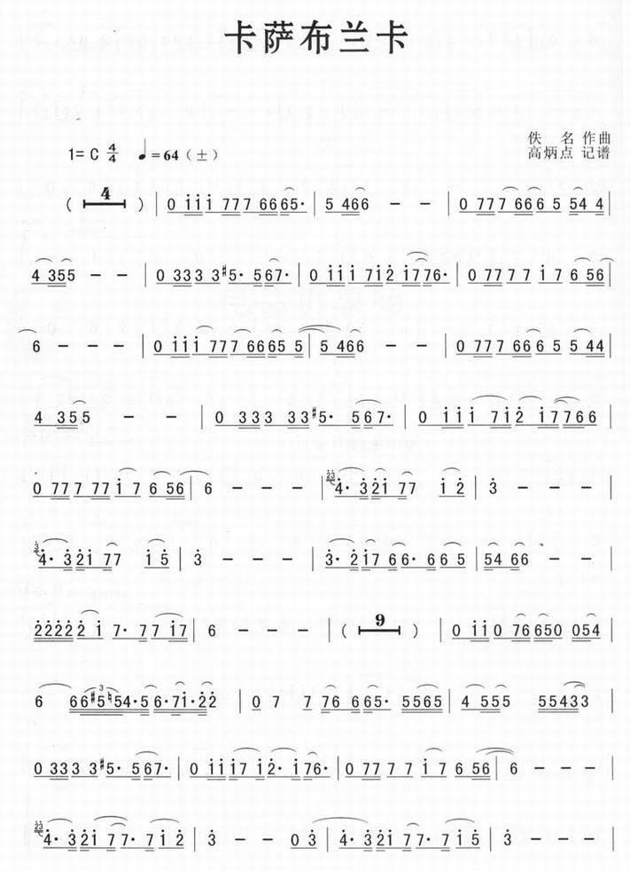 卡萨布兰卡-萨克斯曲谱(简谱+线谱)