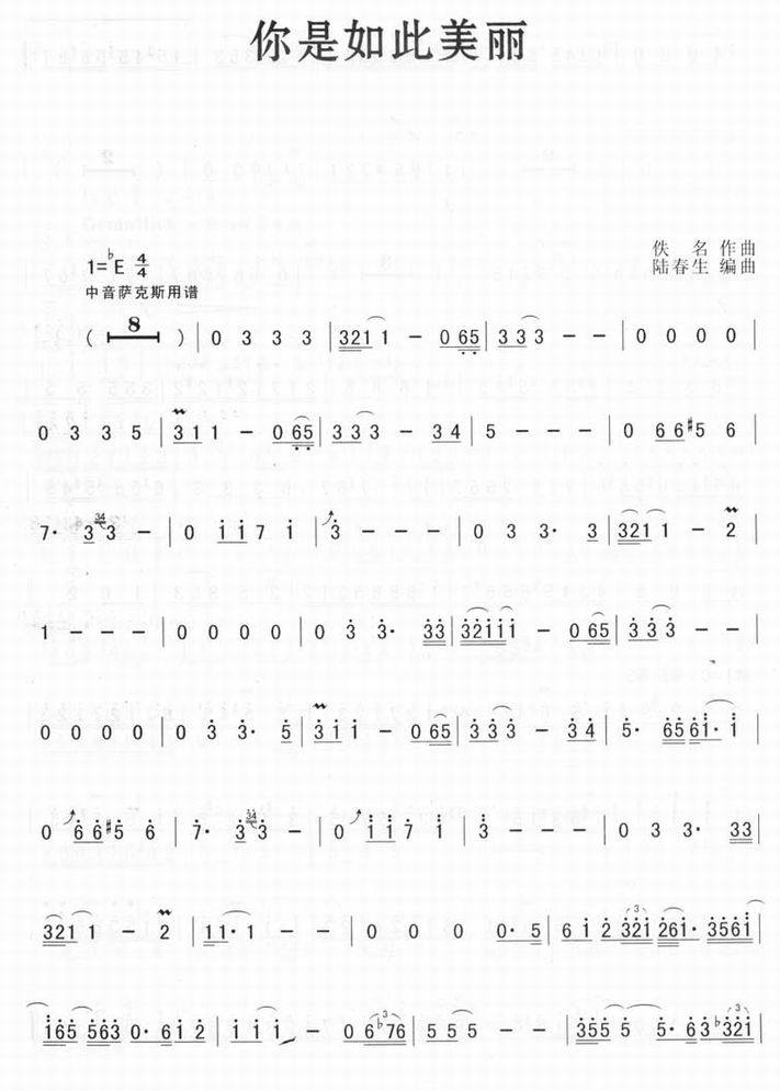 你是如此美丽(萨克斯简谱 萨克斯曲谱 线谱)萨克斯曲 萨克斯谱 萨克斯音乐 萨克斯名曲)