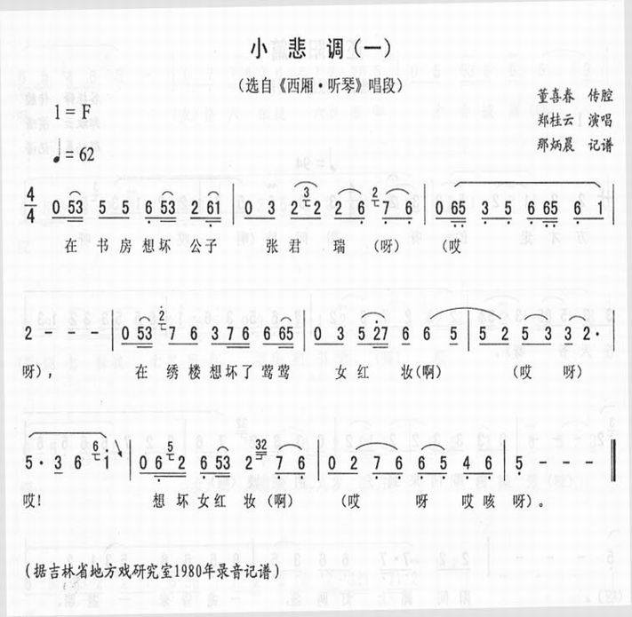 小悲调(一)_<西厢·听琴>二人转简谱 二人转乐谱 二人转曲谱 东北二人转
