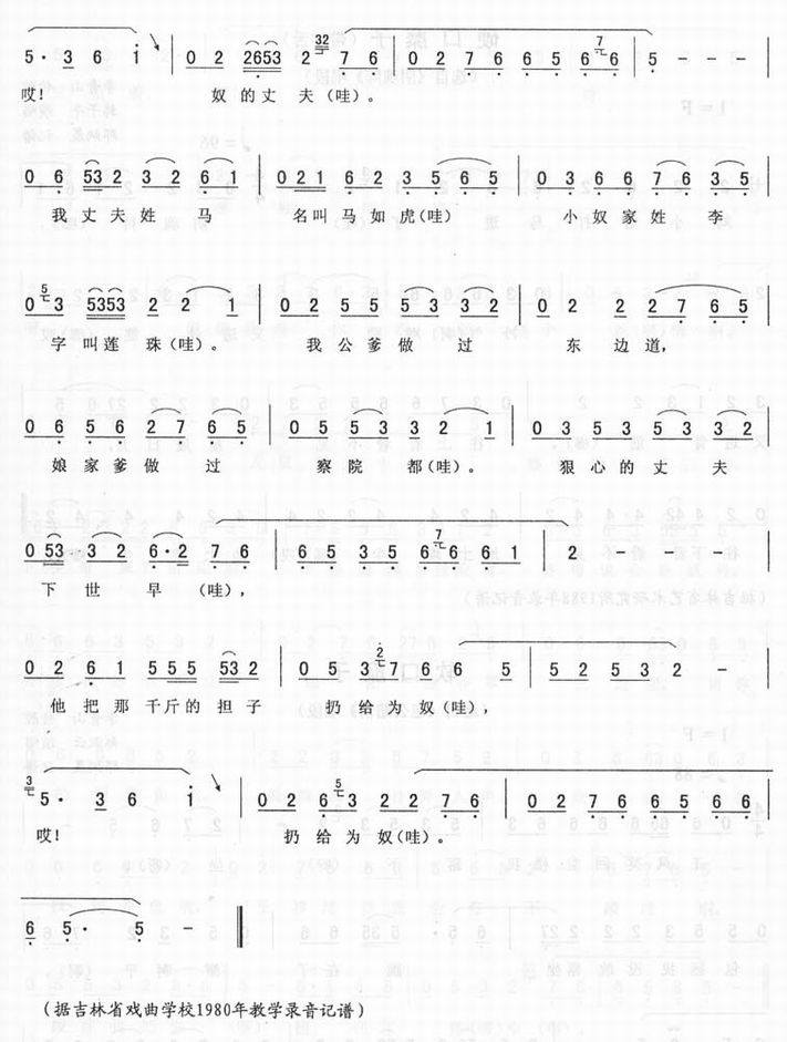 小悲调(二)_<马寡妇开店>二人转简谱 二人转乐谱 二人转曲谱 东北二人转