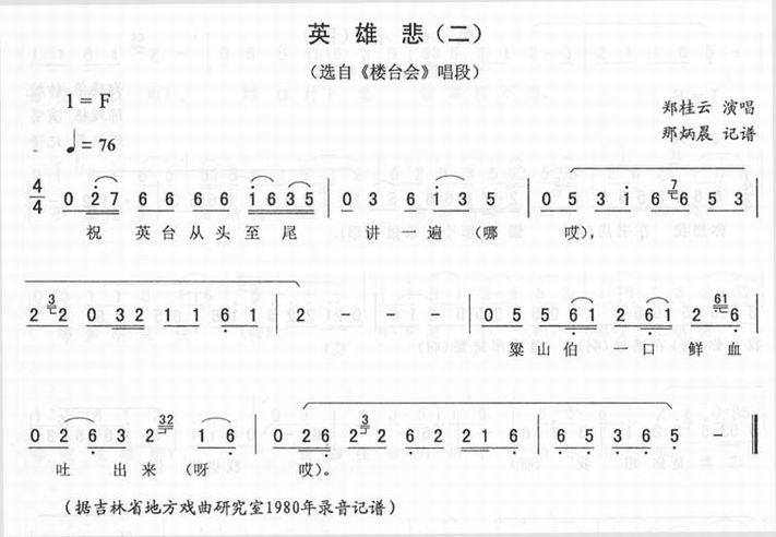 英雄悲(二)_<楼台会>二人转简谱 二人转乐谱 二人转曲谱 东北二人转