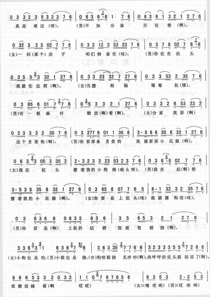 西口韵(四)_<小分家>二人转简谱 二人转乐谱 二人转曲谱 东北二人转