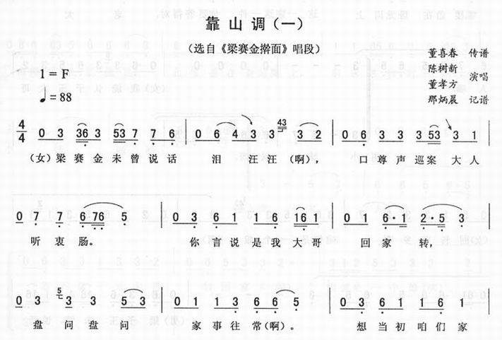 靠山调(一)_<梁赛金擀面>二人转简谱